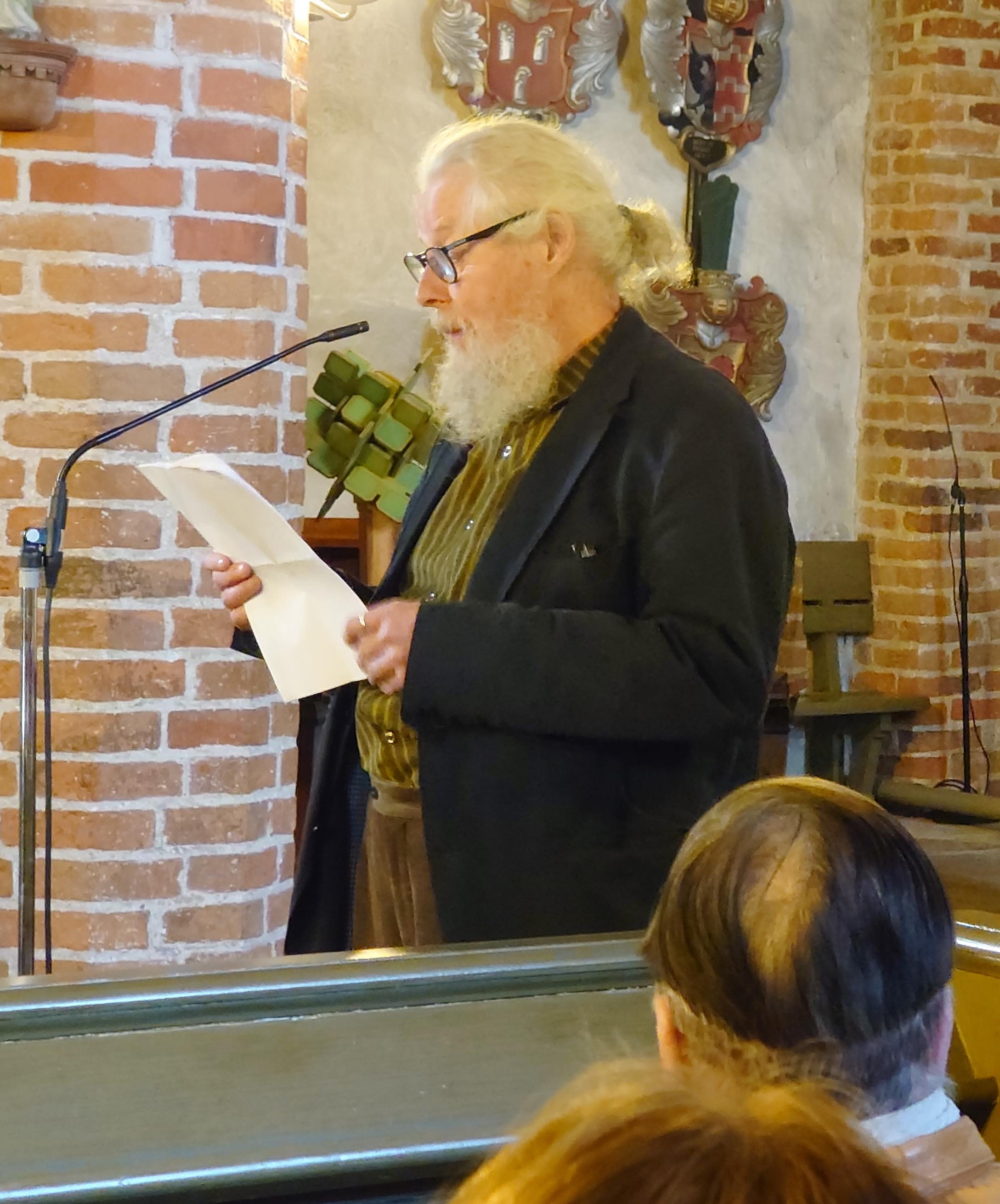 Agricolafesten i Pernå kyrka bjöd på varm stämning och högklassigt program. Ordförande Kai Nieminens hälsningstal innehöll allvarsord om Agricolasällskapets framtid. Foto: Nina Björkman-Nystén.